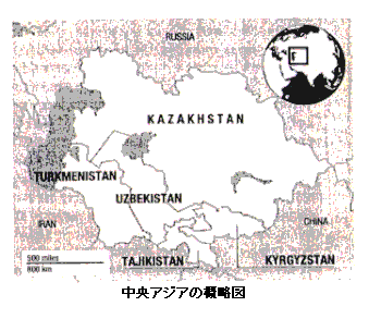 中央アジアの五つの共和国――カザフスタン、キルギスタン、タジキスタン、トゥルクメニスタン、そしてウズベキスタン――が1991年ソビエト連邦の崩壊と共に独立国として地図に描かれることになった。これらの国はロシア、中国、アフガニスタン、イランに囲まれたカスピ海の東側に位置し、西ヨーロッパの約2倍もの広さで5500万以上(1999年1月1日現在)の人口を擁する。