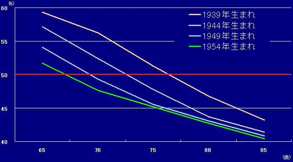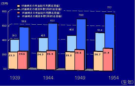 図2 世代別にみた既裁定年金の所得代替率モデル年金受給世帯:基準ケース