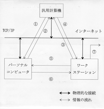 Dワークステーション上に蓄えられた各種情報を分析用パーソ ナルコンピュータに提供。