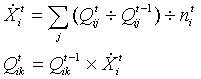 第2ステップでは,第1ステップで修正できなかった部分,すなわちもともと数字が欠落している省の推計を行う。ここでは,第1ステップで修正された数字を利用して,次のような単純な外挿法( extrapolation )を使った。具体的に,統計が存在する省の数字の対前年倍数を求め,その単純平均値をもって欠けている省の数字を推計する。言い換えれば,数字のない省の平均成長率(倍率)が数字のある省と同じと仮定する。式で表せば以下のとおりである。