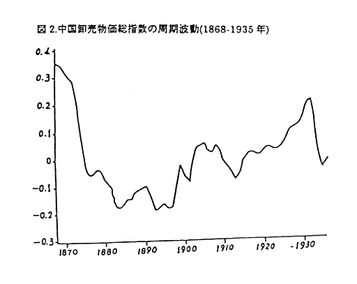 4、中国の物価波動振幅が西欧工業国の波動振幅より小さい原因は,一つには全国的な統一市場が形成されていなかったことであり,もう一つは西欧工業国が金本位制に移行していたのにたいし中国は銀本位制であり、したがって国際市場変動の衝撃が小さかったことです。
